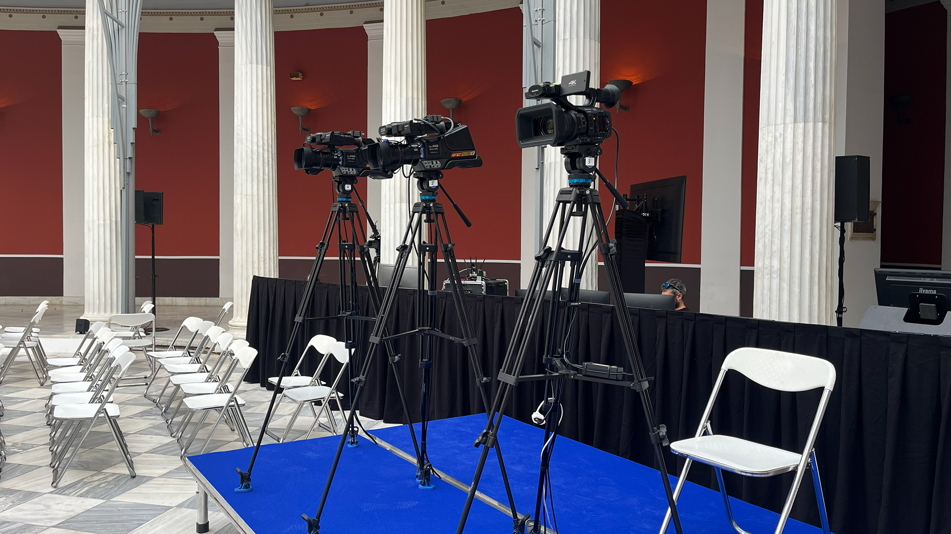 - δύο κοντινά, για τη λεπτομερή κάλυψη των ομιλητών και των παρεμβάσεων.